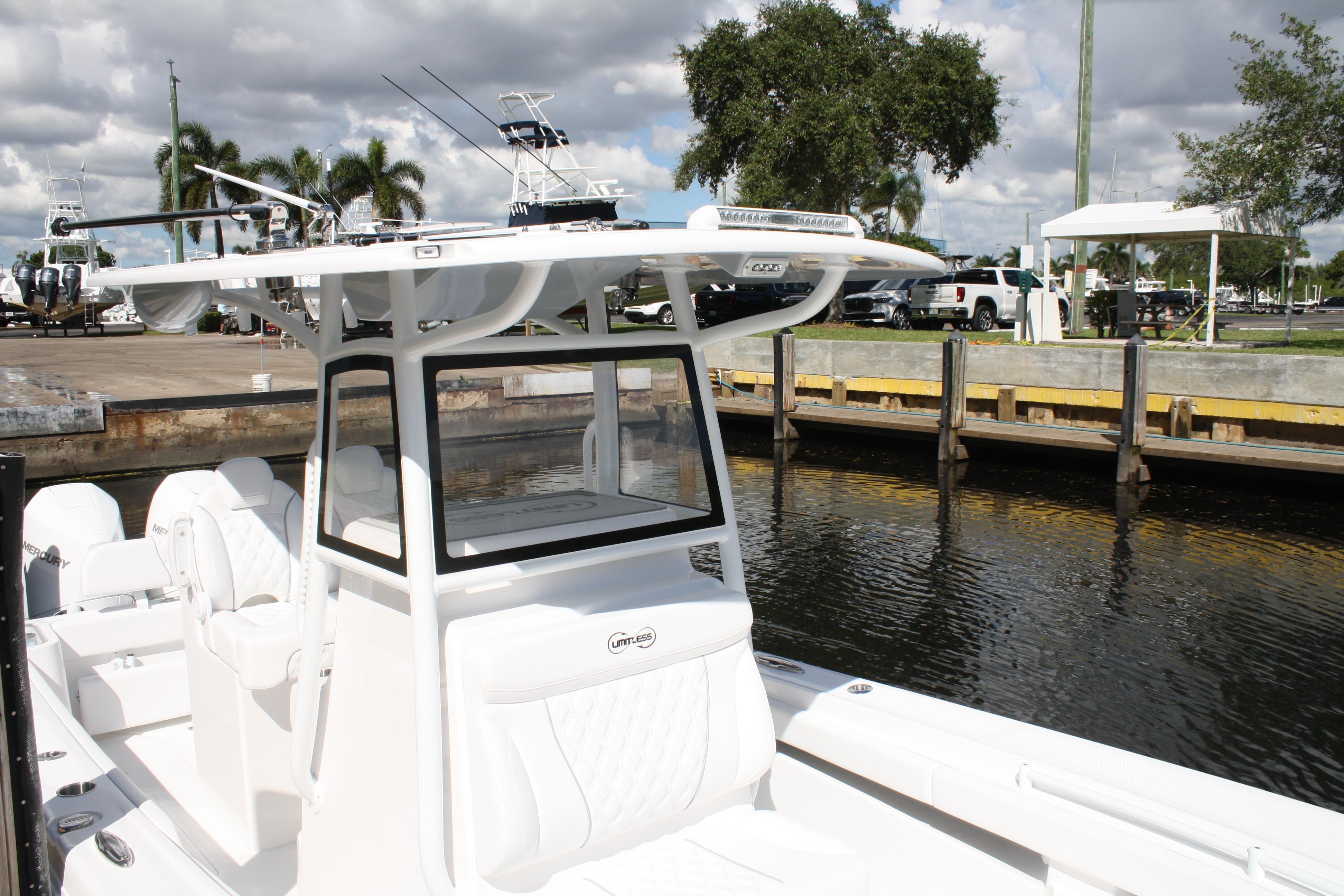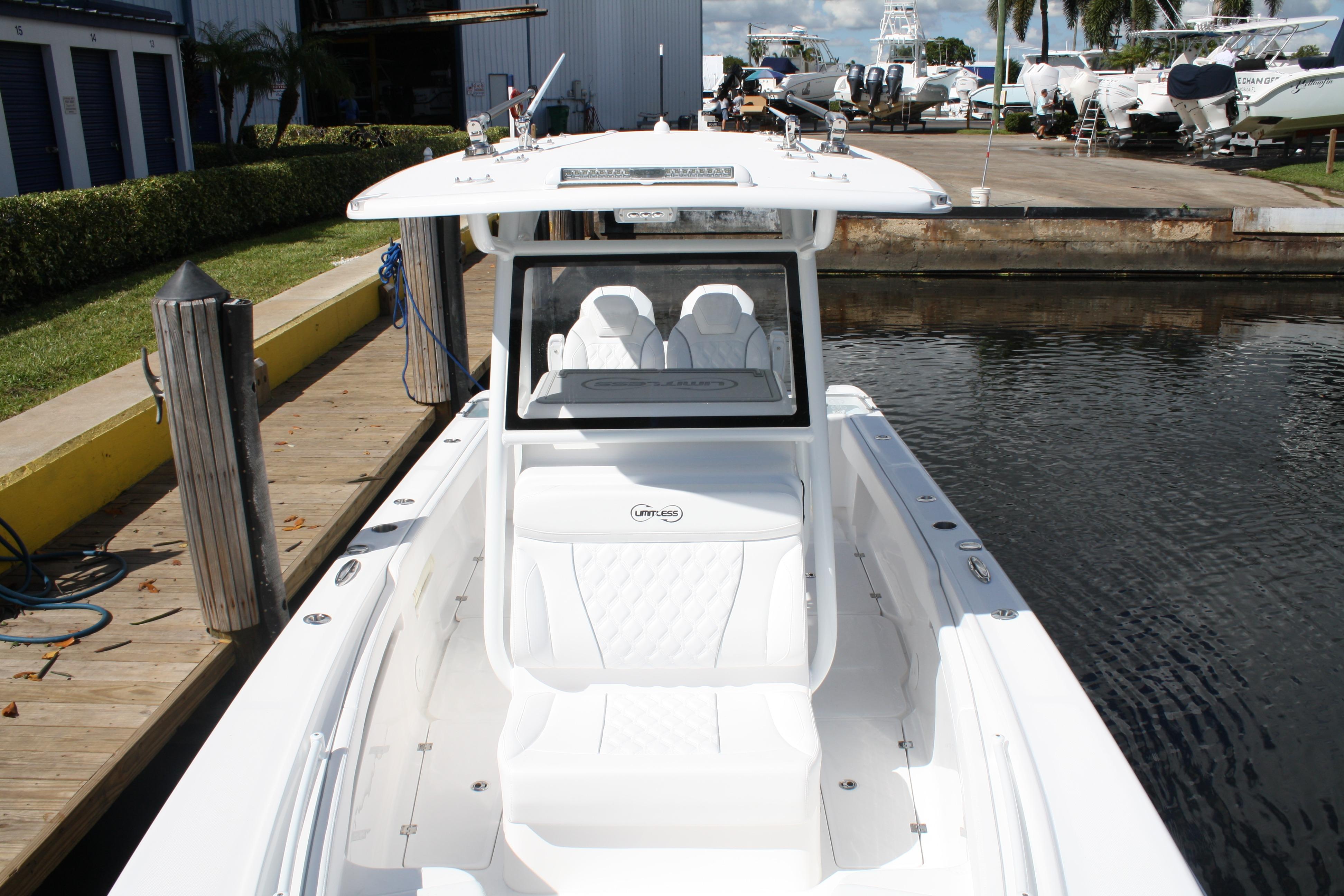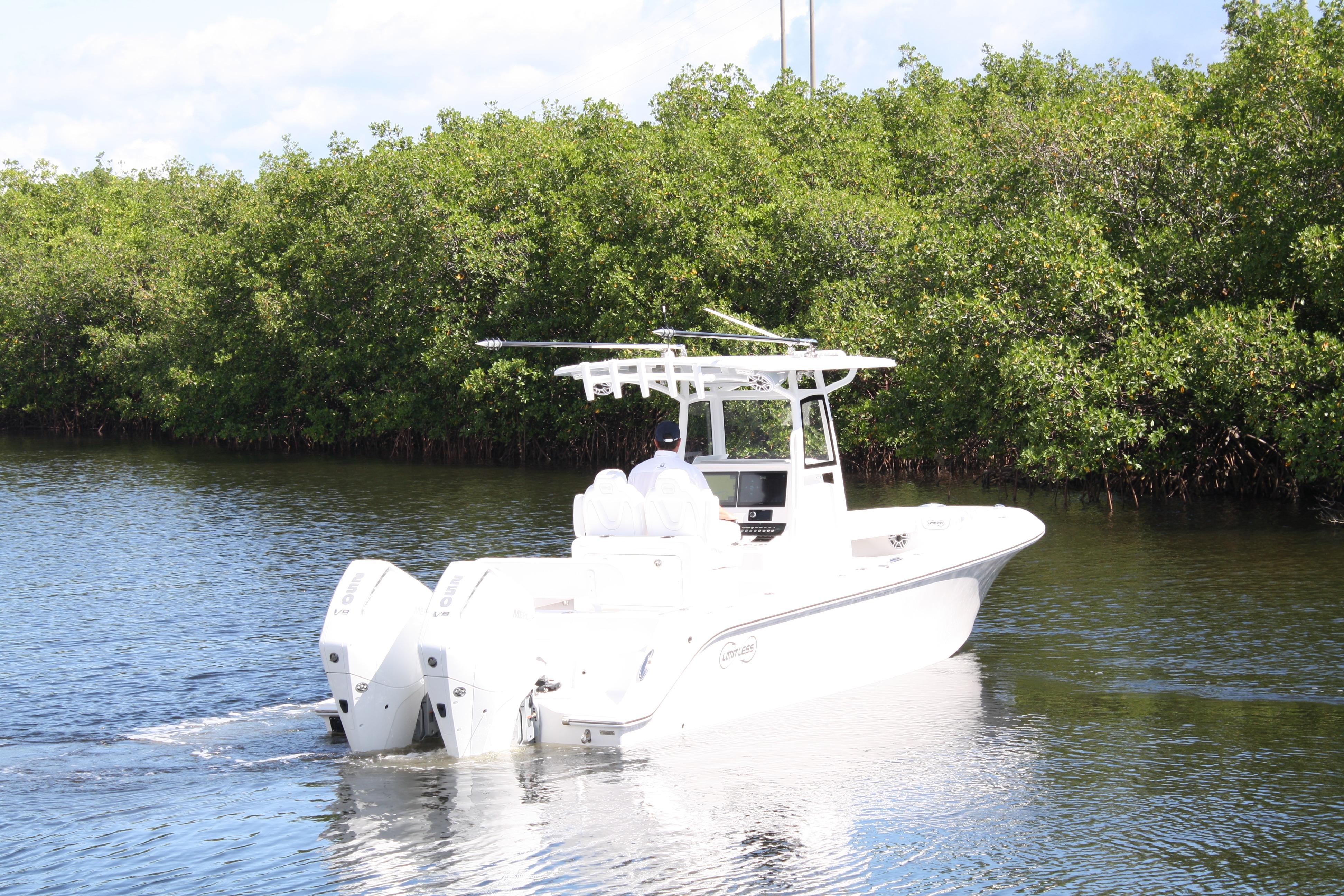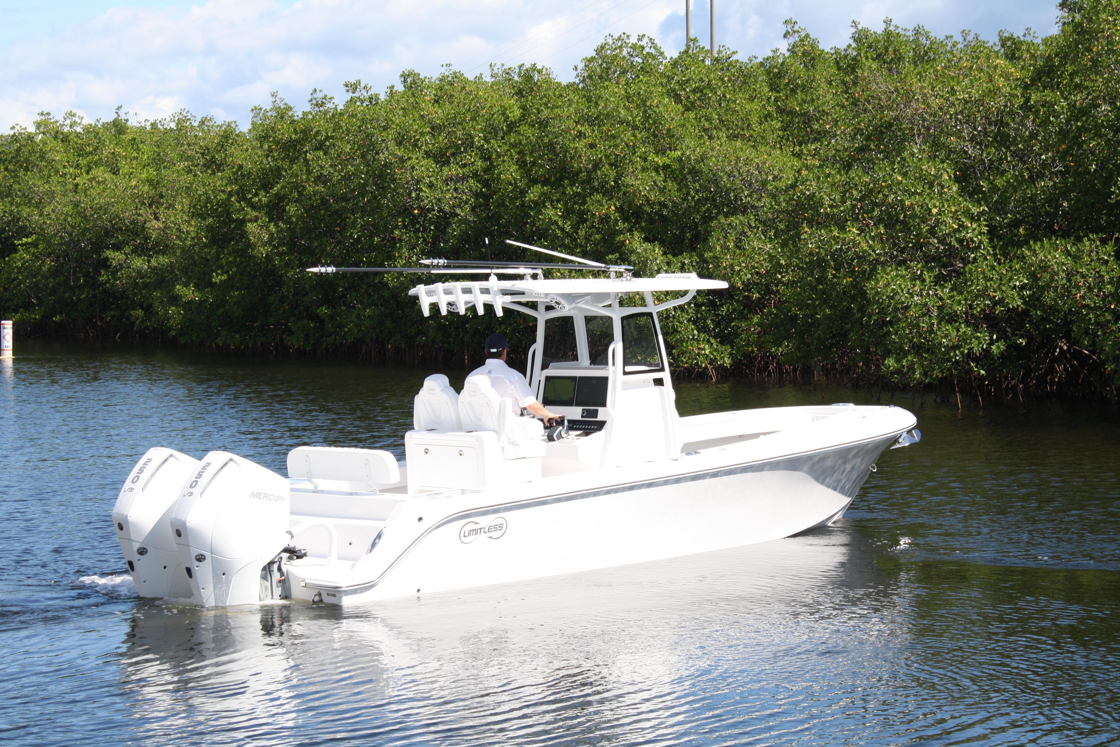 2026 Limitless Center Console 270 Fully Equipped, perfect for Fishing and/or Cruising. Powered with Twin 250 HP Mercury 4-Stroke V8 4.6 Liters Cold Fusion White Paint. Dual Pump Seachest with twin aquarium Baitwells. Electric Windlass. Molded Fiberglass Forward Seating with backrests. Captain Chairs/Bolsters. Hard Top with powder Coated white Structure. Seakeeper Rider Trim Tabs System. Rear Bench Seat. Gemlux 18 Feet Carbon Fiber Outriggers. Lumitec Lighting throughout. Underwater Lights. Full Garmin Electronic Package and Fusion/JL Audio equipment.