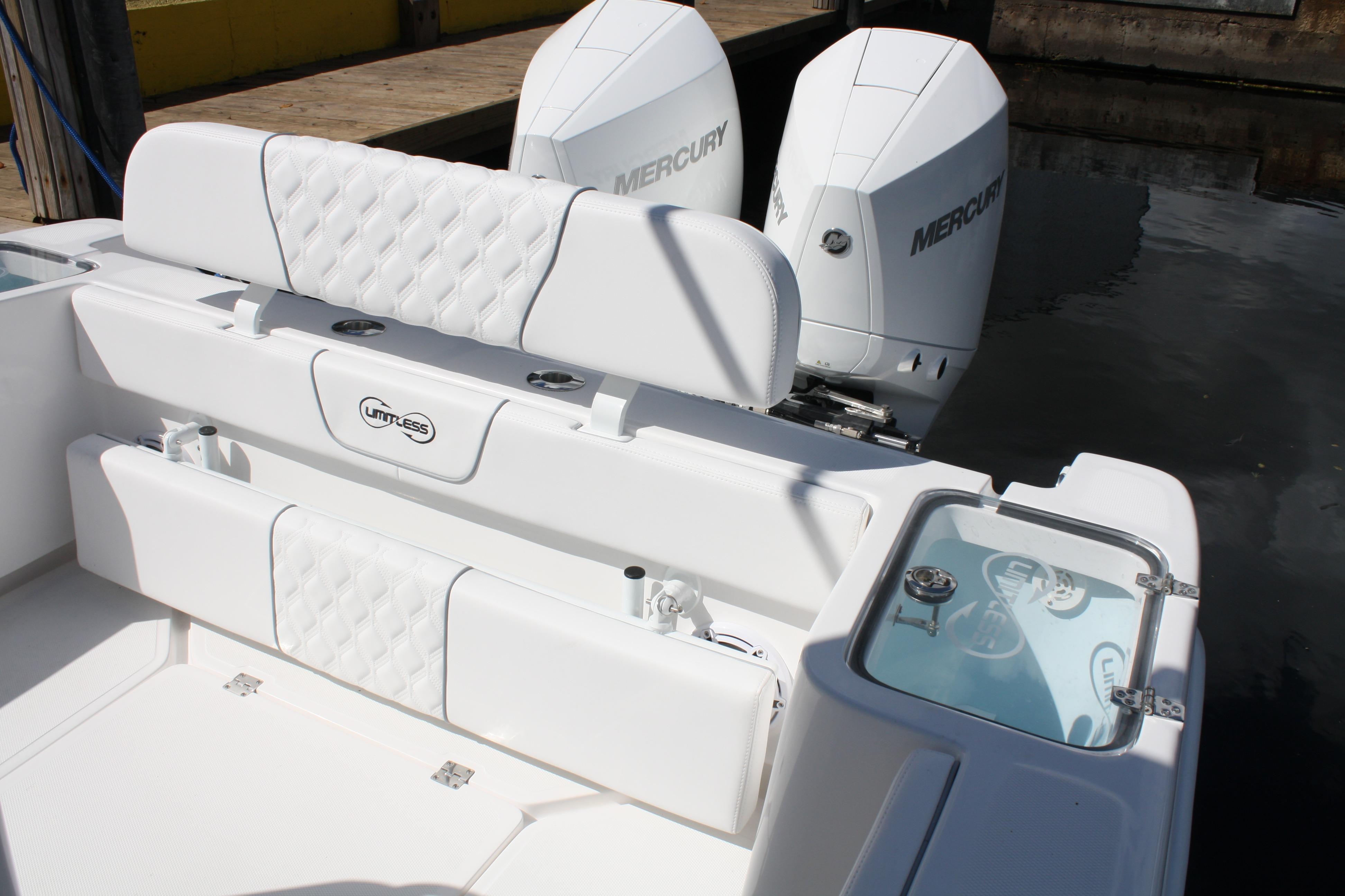 - Upholstery on Leaning Post, Forward Center Console Seat, and 360-degree Deck Cap Bolsters