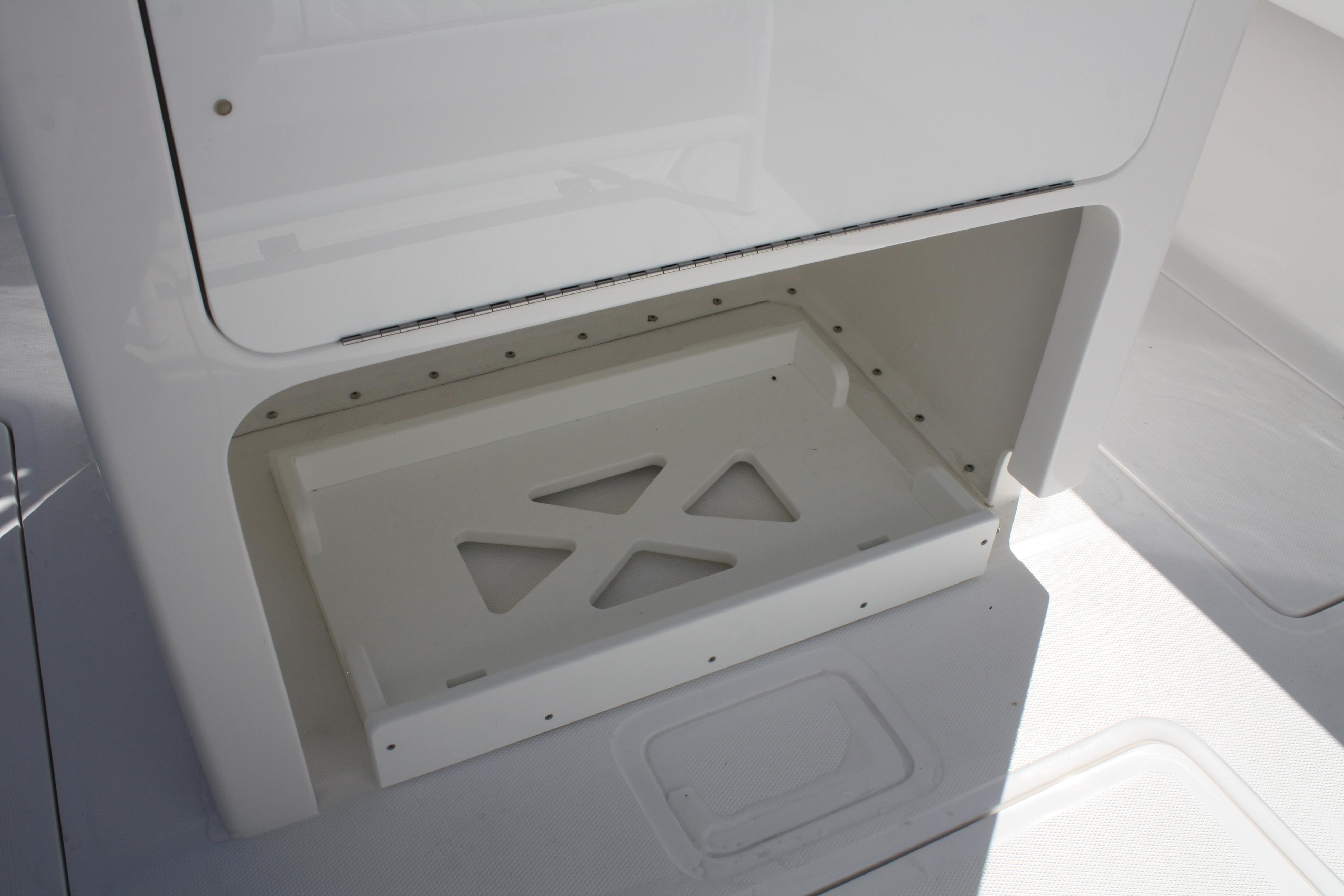- Fiberglass Leaning Post with Tackle Box and Retractable Cooler Slide